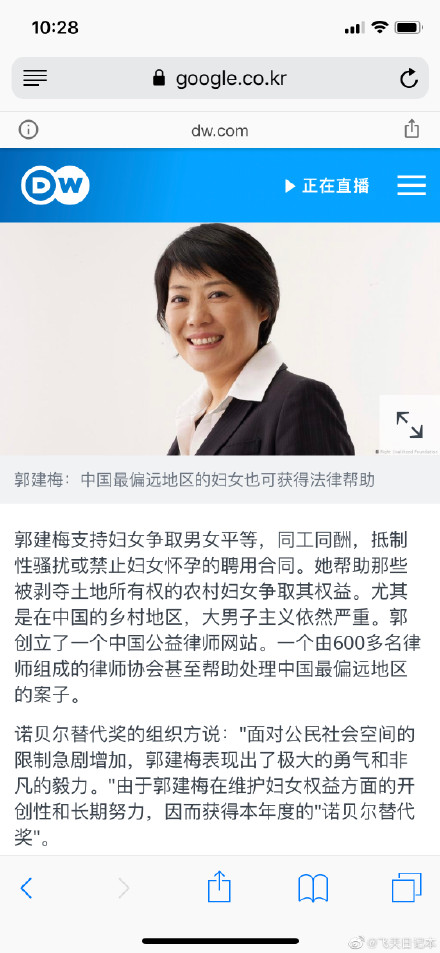 真的好气啊,中国律师郭建梅获得诺贝尔替代奖国内媒体一点水声都没有,必须得发出来宣传一波我们国家的女律师有多厉害了。
