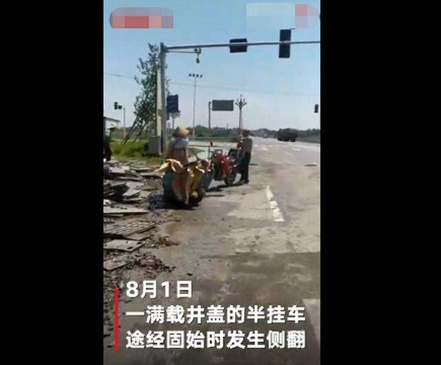 8月1日,一满载井盖的半挂车途经河南固始县时侧翻。2日,货主报警称33吨下水道井盖被附近村民抢光。@平安固始 发布通报:针对公众关注的固始县公安局东关派出所处置的8月2日哄抢井盖舆情,固始县公安局已组织专门力量展开调查,并将严格依法依规处理。处理结果及时公布。